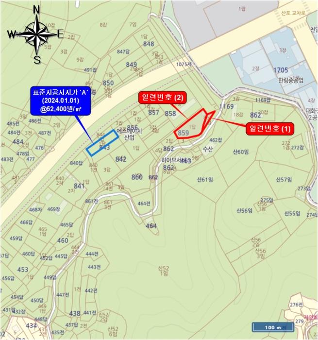 º»°Ç(1)(2)´Â ÁöÀûµµ»ó ¸ÍÁöÀ̳ª ÇöȲÀº º»°Ç ³²µ¿ÃøÀ¸·Î Æø ¾à8m Á¤µµÀÇ ºñÆ÷Àåµµ·Î¿¡ Á¢ÇÔ.