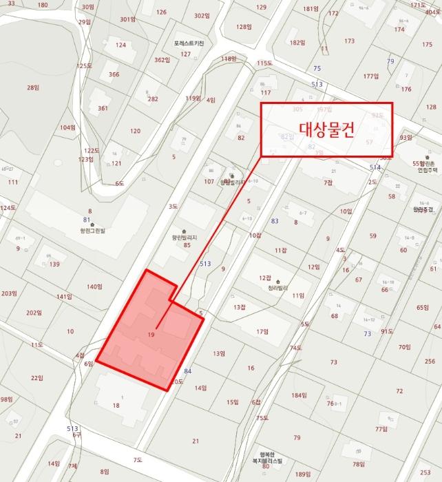 ´ë»ó¹°°Ç ºÏ¼ÃøÀ¸·Î ³ëÆø ¾à8m ³»¿ÜÀÇ Æ÷Àåµµ·Î, ³²µ¿ÃøÀ¸·Î ³ëÆø ¾à6m ³»¿ÜÀÇ Æ÷Àåµµ·Î¿¡ °¢°¢ Á¢ÇÔ.