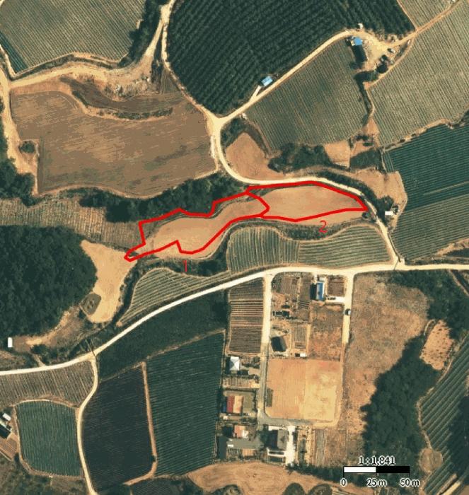 2)±âÈ£2ÅäÁö: ÅäÁö ÇüÅ´ ºÎÁ¤ÇüÀ̸ç,""Àü""À¸·Î ÀÌ¿ëÇϰí ÀÖÀ¸¸ç, ºÏ¼Ãø ±ØÈ÷ ÀϺΠ""³ó·Î""