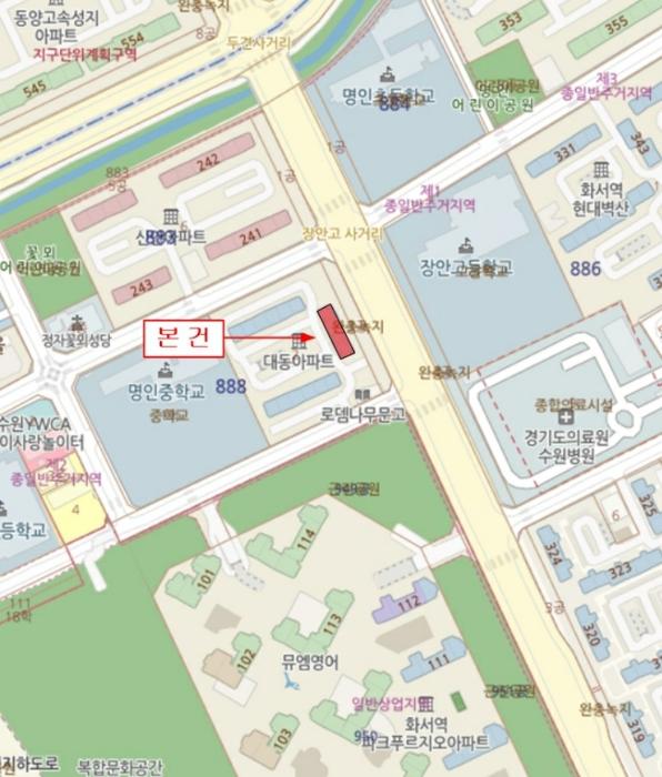 º»°ÇÀº °æ±âµµ ¼ö¿ø½Ã Àå¾È±¸ Á¤ÀÚµ¿ ¼ÒÀç "¸íÀÎÁßÇб³" ºÏµ¿Ãø¿¡ À§Ä¡ÇÏ°í ºÎ±ÙÀº ¾ÆÆÄÆ®´ÜÁö, ´Üµ¶ÁÖÅà ¹× ´Ù¼¼´ëÁÖÅÃ, »ó¾÷¿ë°Ç¹°, Çб³ µîÀÌ ¼ÒÀçÇϸç Á¦¹Ý ÁÖÀ§È¯°æÀº º¸ÅëÀÓ.