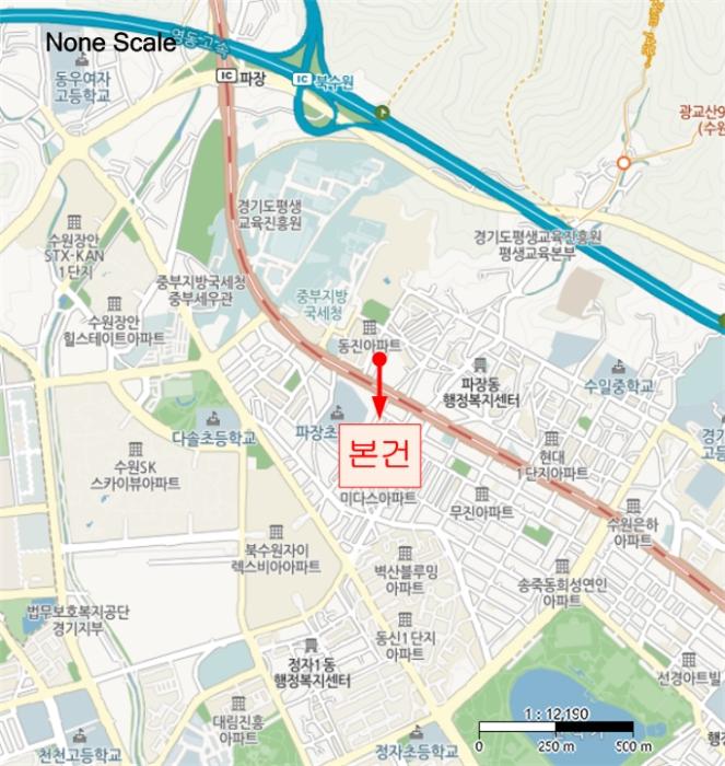 º»°ÇÀº °æ±âµµ ¼ö¿ø½Ã Àå¾È±¸ ÆÄÀ嵿 ¼ÒÀç "ÁߺÎÁö¹æ±¹¼¼Ã»" ³²µ¿Ãø Àαٿ¡ À§Ä¡Çϸç, ÁÖÀ§´Â ¾ÆÆÄÆ®, ´Ù¼¼´ë, ´Üµ¶, »ó°¡ µîÀÌ È¥ÀçÇÏ´Â ÁÖÅÃÁö´ë·Î ÁÖÀ§È¯°æÀº º¸ÅëÀÓ.