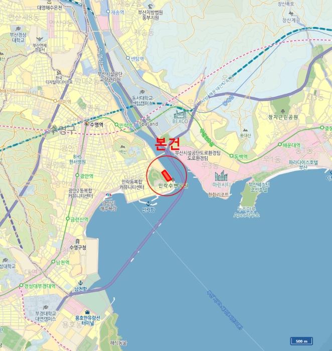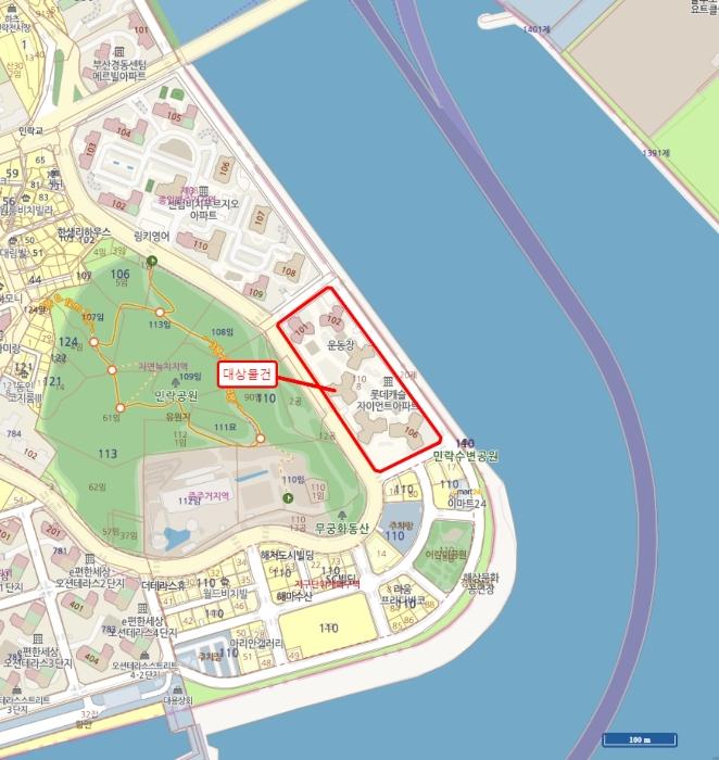 ´ë»ó¹°°ÇÀº ºÎ»ê±¤¿ª½Ã ¼ö¿µ±¸ ¹Î¶ôµ¿ ¼ÒÀç "¹Î¶ô°ø¿ø" µ¿Ãø Àαٿ¡ À§Ä¡ÇÏ´Â ·Ôµ¥Ä³½½ÀÚÀÌ¾ðÆ® ´ÜÁö(ÃÑ 6°³µ¿ 591¼¼´ë) ³» ¼ÒÀçÇϸç, ÁÖº¯Àº ¾ÆÆÄÆ®´ÜÁö, °ø¿ø ¹× ±Ù¸°»ýȰ½Ã¼³ µîÀ¸·Î Çü¼ºµÇ¾î ÀÖ½À´Ï´Ù.