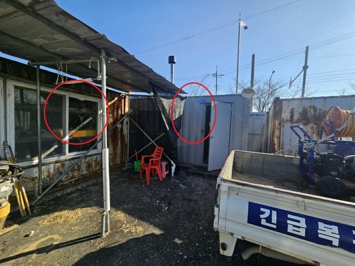 ±âÈ£ 1,2)ÅäÁö Áö»ó¿¡ ¼ÒÀ¯ÀÚ ¹Ì»óÀÇ Á¦½Ã¿Ü ¹°°Ç ÄÜÅ×ÀÌ³Ê Ã¢°í, °£ÀÌÈÀå½Ç(¤¡ - ¤µ)ÀÌ ¼ÒÀçÇÔ.